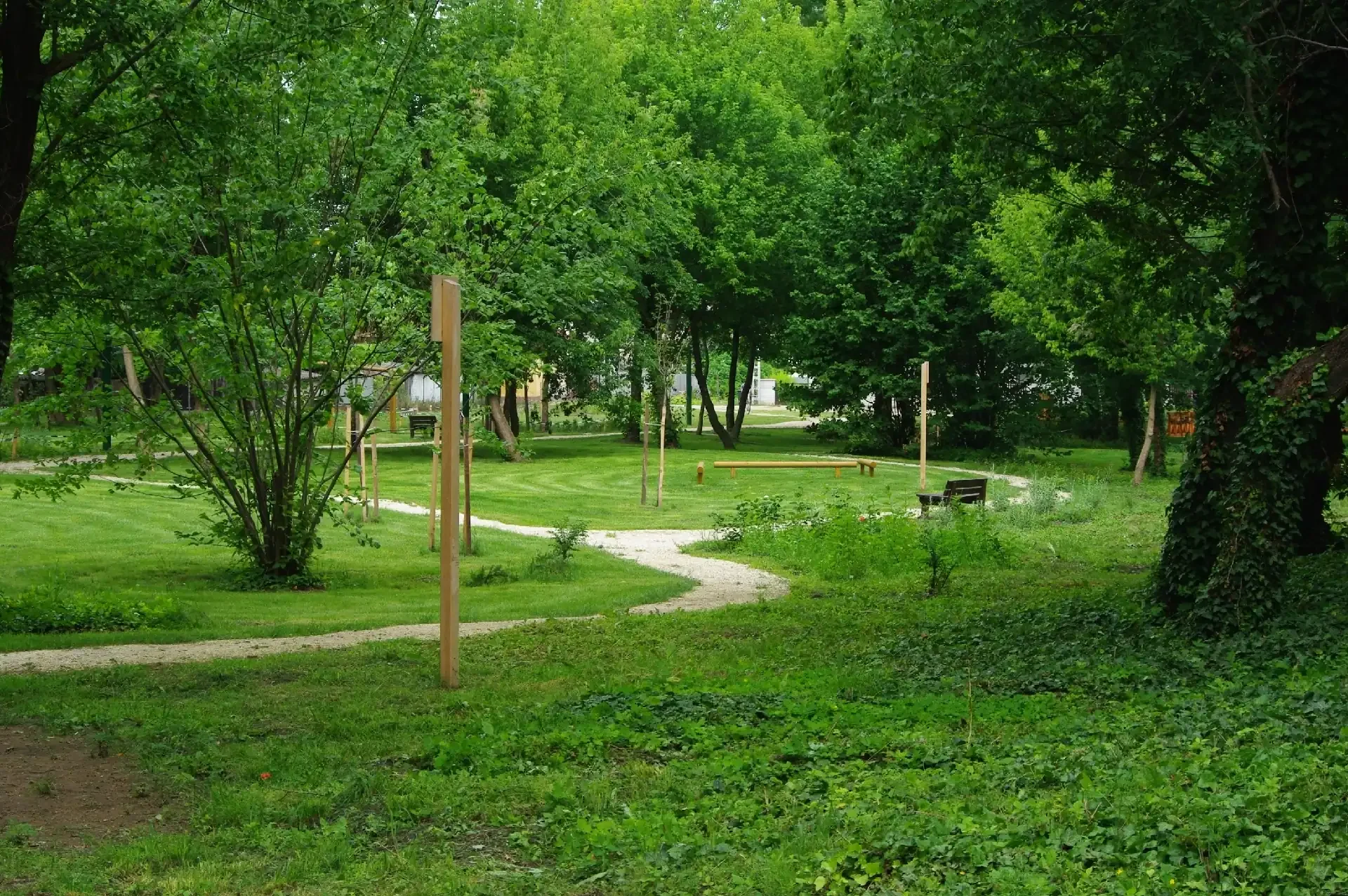 A parkot a funkcióknak megfelelően öt egységre bontottuk. A nagyméretű füves rét biztosít helyet a rendezvényeknek, illetve a lovaspályának. A rétre ligetes facsoportok kerültek, megmaradt a játszófelületként is használható gyep. A meglévő játszótér felújításra került, bővítéseként itt kaptak helyet új, nagyobb korcsoport számára használható játszóeszközök is. A Százéves fa környezetében a növényzet felújításra került, az idős fákon pedig idővel egy kalandpálya is kialakítható. A Körtó vízutánpótlásának biztosítása és a meder tisztítása következtében egy hangulatos, vonzó pihenőteret alakítottunk ki, a szigetre pedig egy új hidat is vezettünk. A csatorna menti ligetes erdő növényállományának kezelése és ifjítása, új fák csoportos telepítése következtében kellemes, megfelelően benapozott ligetes állomány jött létre. A területet sétányhálózattal feltártuk, a sétányok mellett padokat és erdei tornapálya-eszközöket helyeztünk el.