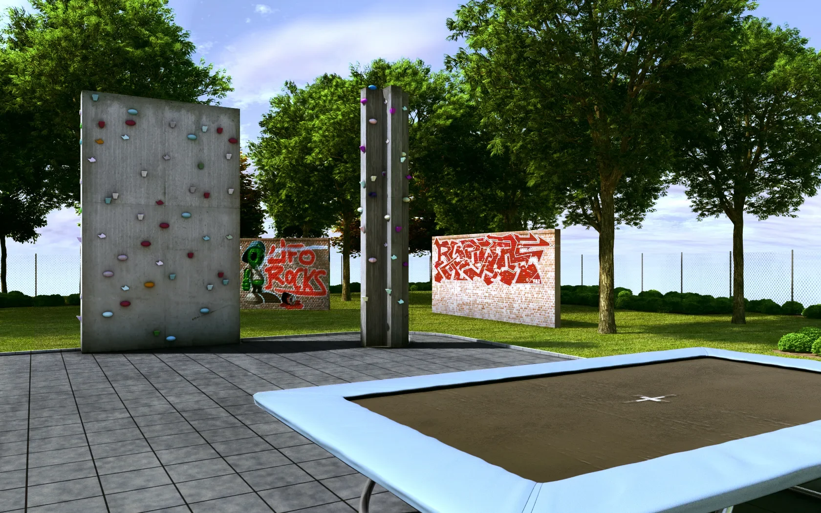A sportpark nem csak a sportolók számára kell, hogy vonzó legyen, hanem fiatalok találkozóhelyeként is kell szolgálnia. Alapvető cél volt, hogy egy kedvelt, fiatalos, modern terület alakuljon ki, s hogy a fiatalok még jobban magukénak érezzék a teret, a mobil utcabútorokat a saját igényeiknek megfelelően mozgathatják, alakíthatják. A sportparkba elhelyeztünk továbbá egy szabadon használható mászófalat és egy kültéri trambulint is.