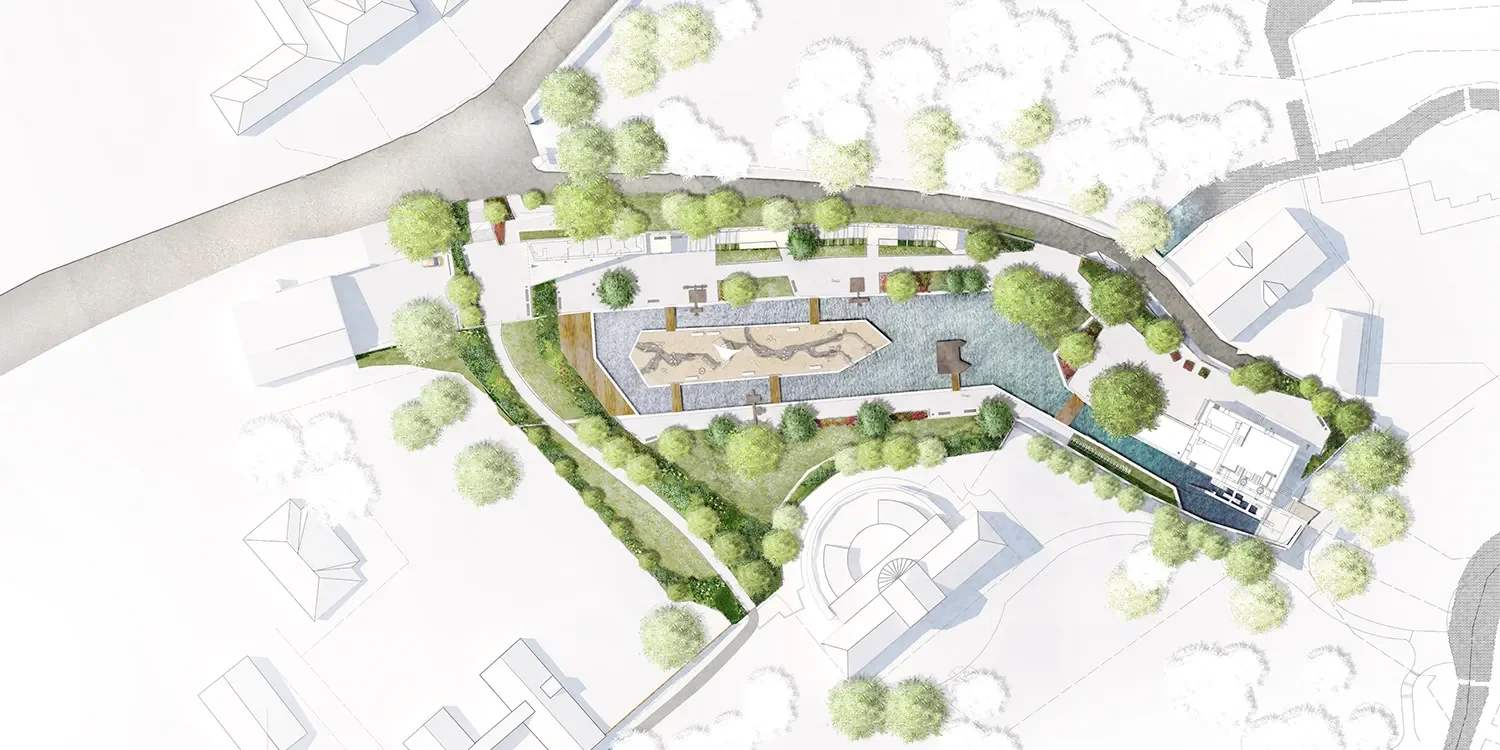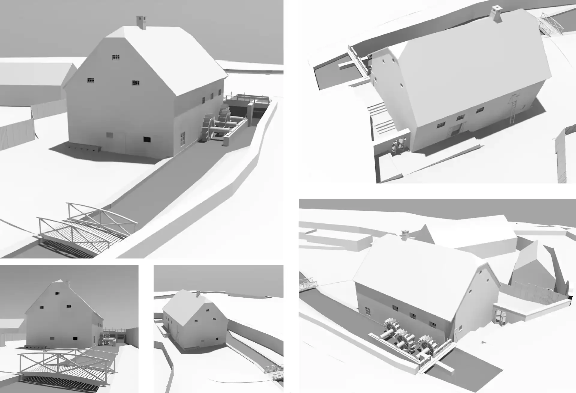 A tervezési program értelmében a műemléki védettségű tatai Angolkertben, a Malom-árok első malmának környezetében egy körbekerített, belépőjeggyel látogatható, zárt bemutatóterület kialakítása vált szükségessé. A tervezett fejlesztés célja a város egykori malmainak, illetve a malomiparhoz kapcsolódó vízhasznosítási és gépészeti megoldások bemutatása, interaktív, elsősorban gyermekközönséget megszólító módon. Az Angolkert városszövettel való kapcsolatának erősítése érdekében az Erzsébet királyné tere felől gyalogos átközlekedési lehetőséget biztosítunk a Pálmaház irányába. Az átkötő útvonal mentén babakocsival is járható, akadálymentes sétány létesül. A sétány kiszélesedésével egy kisebb térbővület jön létre, amely a zárt bemutatóterület bejárata előtti gyülekező- és fogadótérként funkcionál.